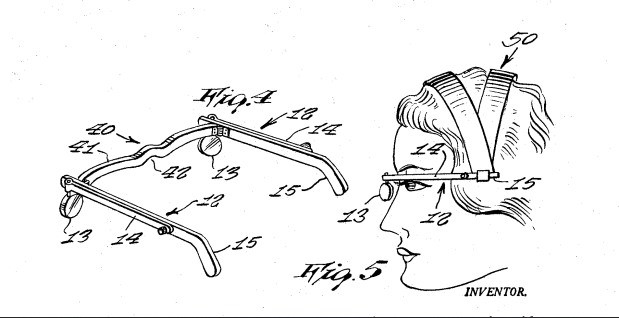Et si vos lunettes vous permettaient de voir dans votre dos ? Cette idée étonnante (une idée de fou, pourrait dire la publicité d’un célèbre lunettier) a été protégée par un certain Joseph A. Freed en 1969, aux Etats-Unis (n° US3423150). Il s’agit ici d’une monture de lunettes équipée de petits rétroviseurs réglables, fixés de chaque côté, comme pour les voitures, de façon à voir derrière soi sans tourner la tête.